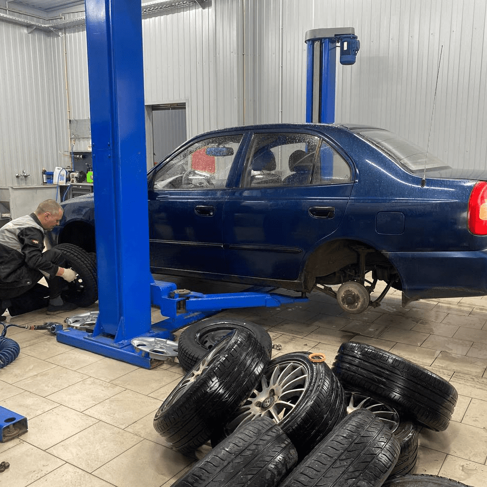 Приятно удивили работой: колеса поменяли оперативно, старые аккуратно упаковали и сложили в багажник. Видно, что мастера работают профессионально. Есть удобная зона ожидания с экраном - можно наблюдать за процессом.
