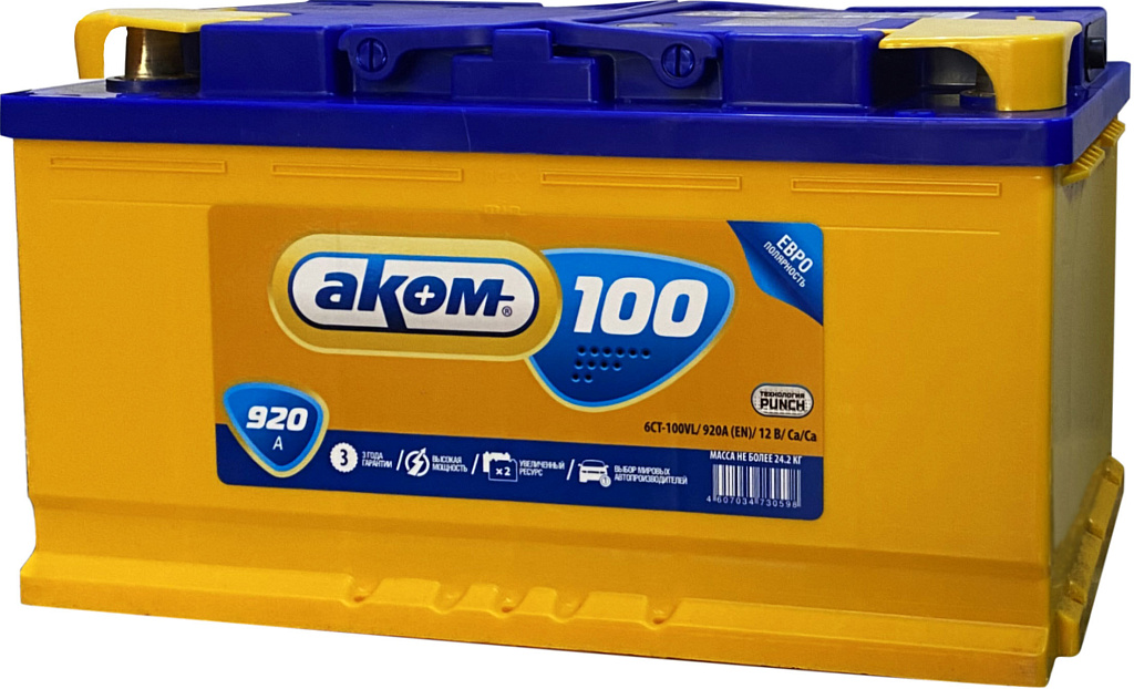 Аккумулятор AKOM 100 Ач 920 А обратная полярность