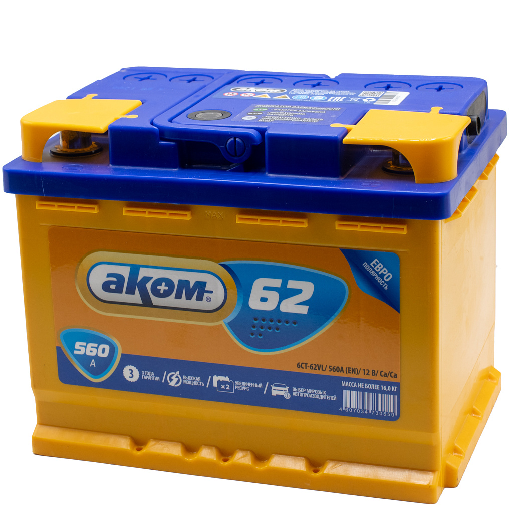 Аккумулятор AKOM 62 Ач 560 А обратная полярность