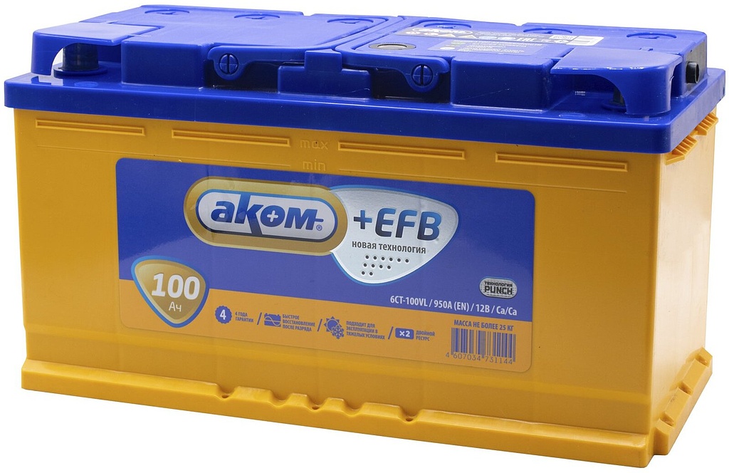 Аккумулятор AKOM +EFB — новейшая разработка завода «Аком» (г. Жигулёвск), созданная с применением технологии EFB. Благодаря усовершенствованной конструкции пластин, технологии PUNCH и улучшенному сепаратору, срок службы увеличен вдвое по сравнению с классическими аккумуляторами.