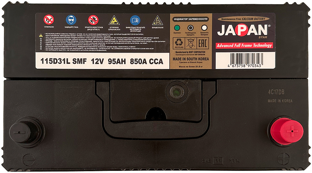 АКБ JAPAN STAR SMF — прочный и надёжный аккумулятор, который обеспечивает уверенный запуск двигателя и стабильную работу всех электрических систем автомобиля на протяжении многих лет.