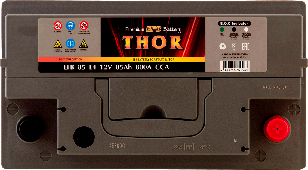 Аккумуляторы THOR EFB — это современная линейка, разработанная и произведённая компанией BOST CORPORATION (Южная Корея). Они предназначены для автомобилей, оснащённых системой Start-Stop, и отличаются повышенной устойчивостью к циклическим нагрузкам.