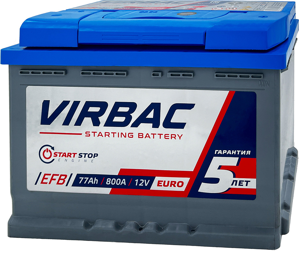Аккумулятор VIRBAC EFB 77 Ач 800 А обратная полярность