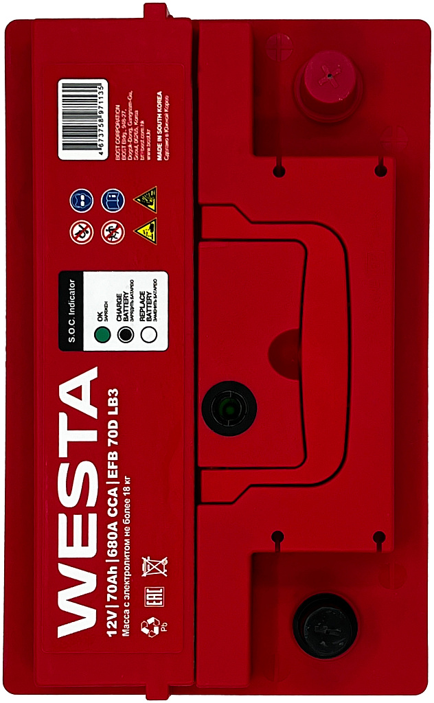 Описание аккумулятора WESTA Korea (EFB 70D LB3)