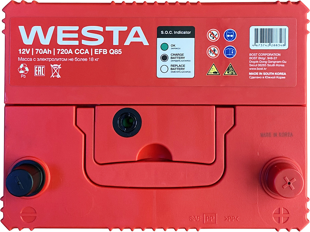 Аккумулятор WESTA Korea (EFB Q85) 70 Ач 720 А обратная полярность