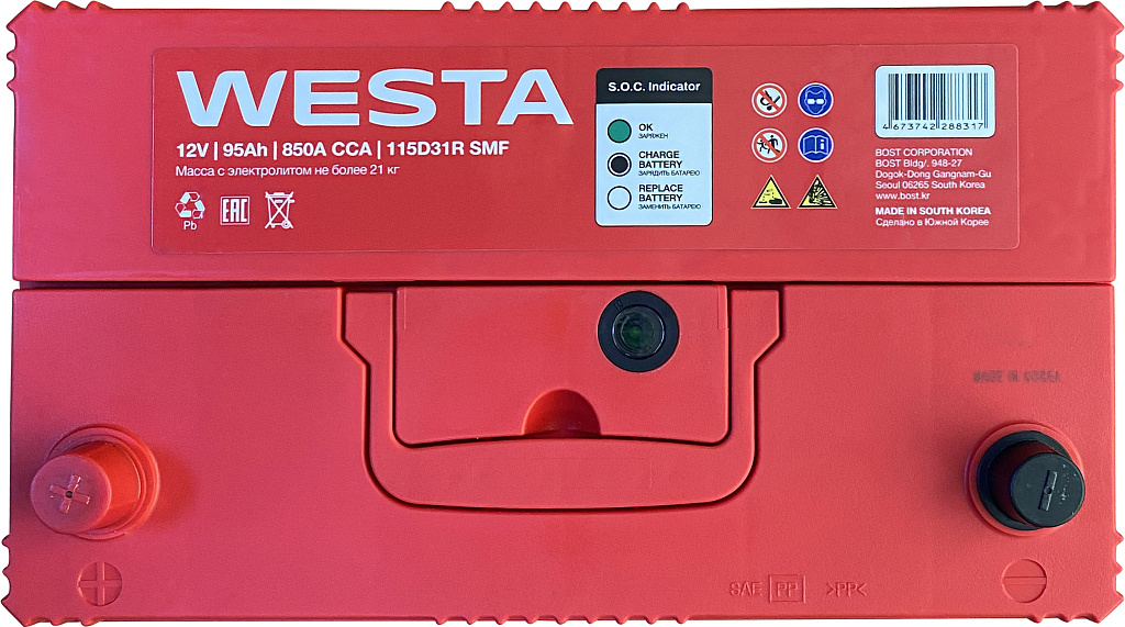 Аккумуляторы WESTA Korea SMF производятся на заводе BOST CORPORATION в Южной Корее с использованием новейших технологий и материалов премиум-класса. Эти батареи предназначены для большинства современных бензиновых и дизельных легковых автомобилей. Благодаря своей конструкции и технологии изготовления они обеспечивают надежное питание всех современных бортовых электроприборов.