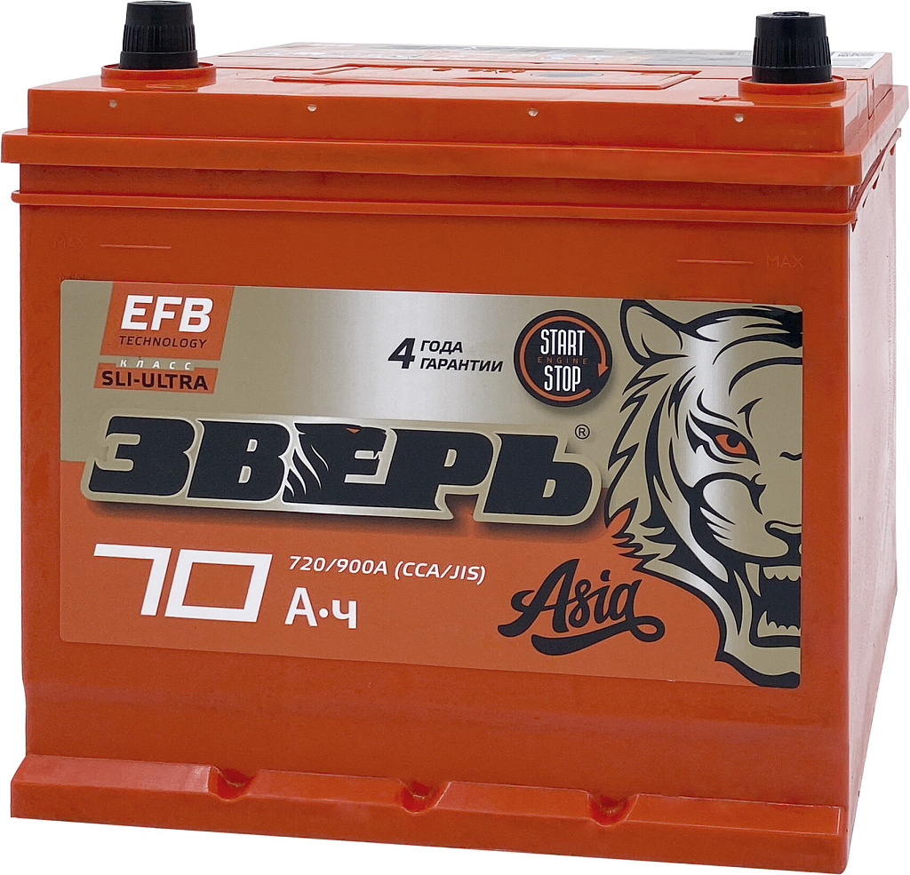 Аккумулятор ЗВЕРЬ Asia EFB 70 Ач 720 А обратная полярность