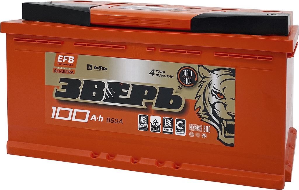 Аккумулятор ЗВЕРЬ EFB 100 Ач 860 А обратная полярность