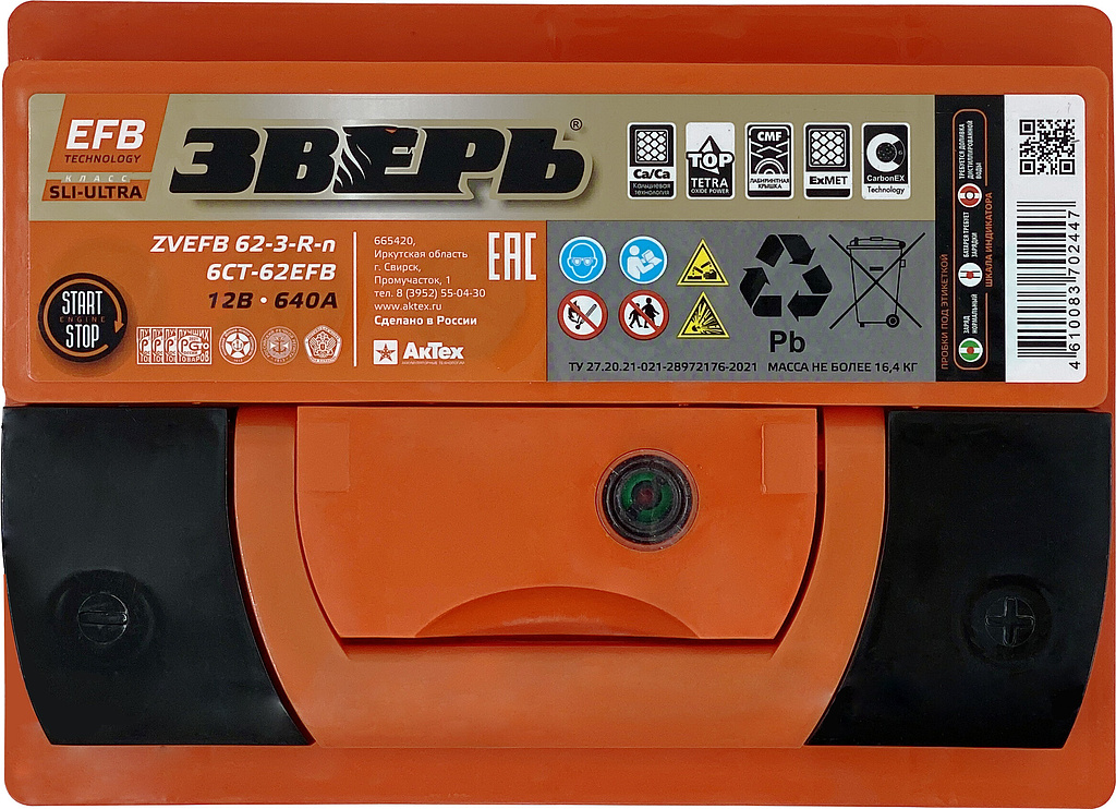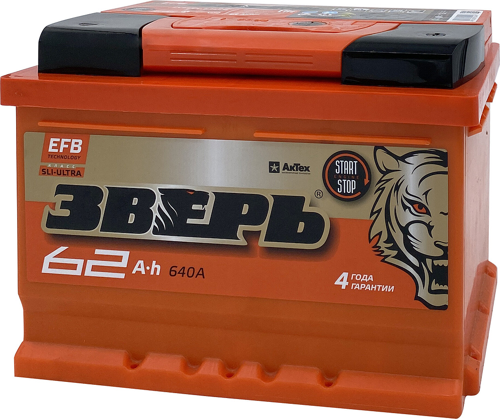 Аккумулятор ЗВЕРЬ EFB 62 Ач 640 А обратная полярность